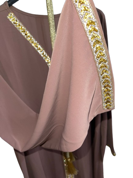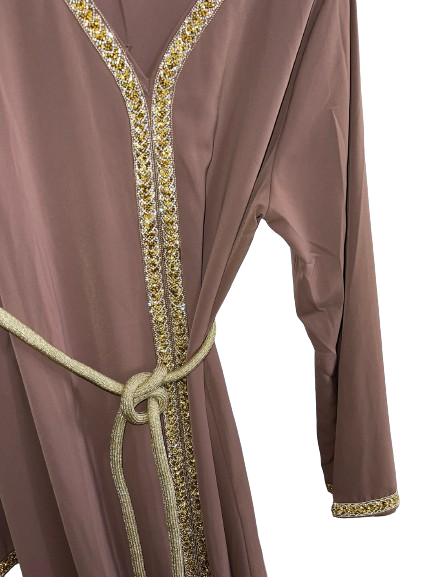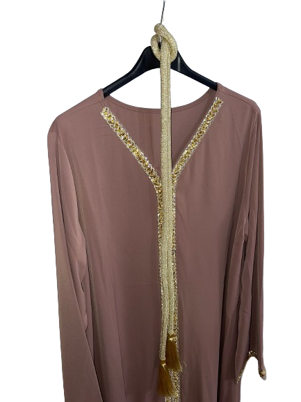 Abaya para ocasiones especiales, con bordados dorados y cinturón